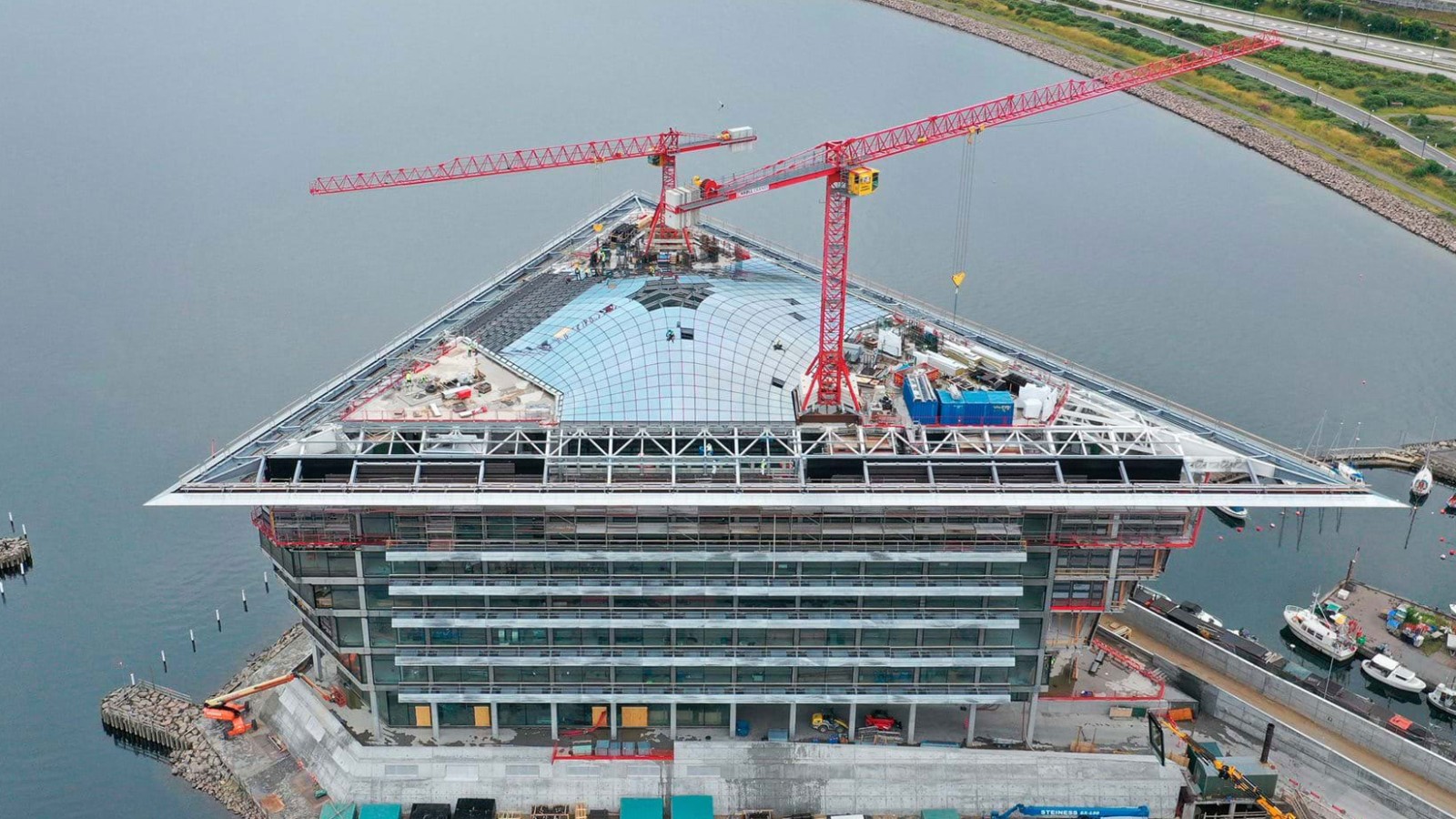 Внушительный стеклянный фасад всего здания способствует этому. Изнутри открывается захватывающий вид на Эресунн, расположенный прямо между Копенгагеном в Дании и Мальме в Швеции. В то же время дневной свет легко проникает внутрь, создавая залитые светом помещения офиса, вестибюля, кафе и конференц-залов.